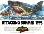 Jaws is a theme park attraction based upon the films of the same name. The attraction places guests aboard tour boats for what should be a leisurely tour of Amity Harbor, but instead becomes a harrowing chase between the craft and a very determined great white shark. Jaws is an expanded version of a famous scene on the long-running backlot tour at Universal Studios Hollywood, also inspired by the film, and can be found at Universal Studios Japan near Osaka, and formerly, at Universal Studios Florida in Orlando.